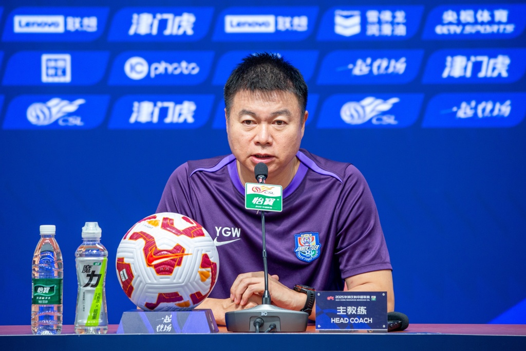 于根伟:“其实还是我们首先要重视防守,另外防守靠整体,不只是后防线球员的责任,我们一直也希望这支球队,能够体现老天津队的这种风格跟作风。大家通过共同的协作,来把球队的防守能够做好。”